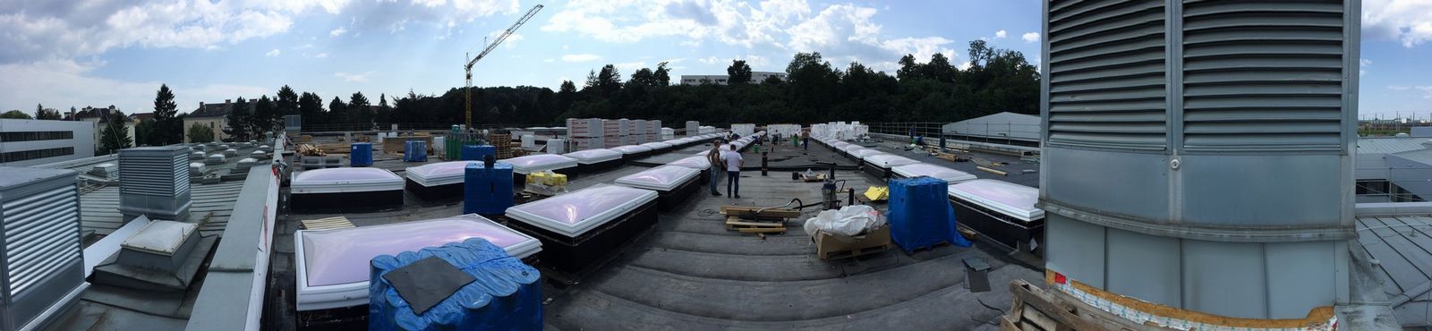Die ca. 180 Stk. der bestehenden Lichtkuppeln werden abgebrochen und durch neue ersetzt.